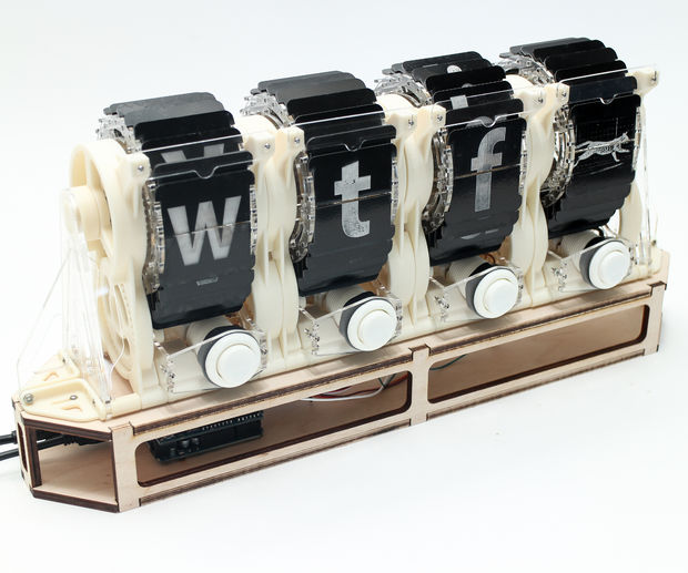 在表情符號大行其道的數位化時代,還是有不少特定的英文字母被大量使用,美國一名自造者就用了翻頁鐘的特性,讓手機上的心情代碼轉化為翻頁鐘上的字卡。