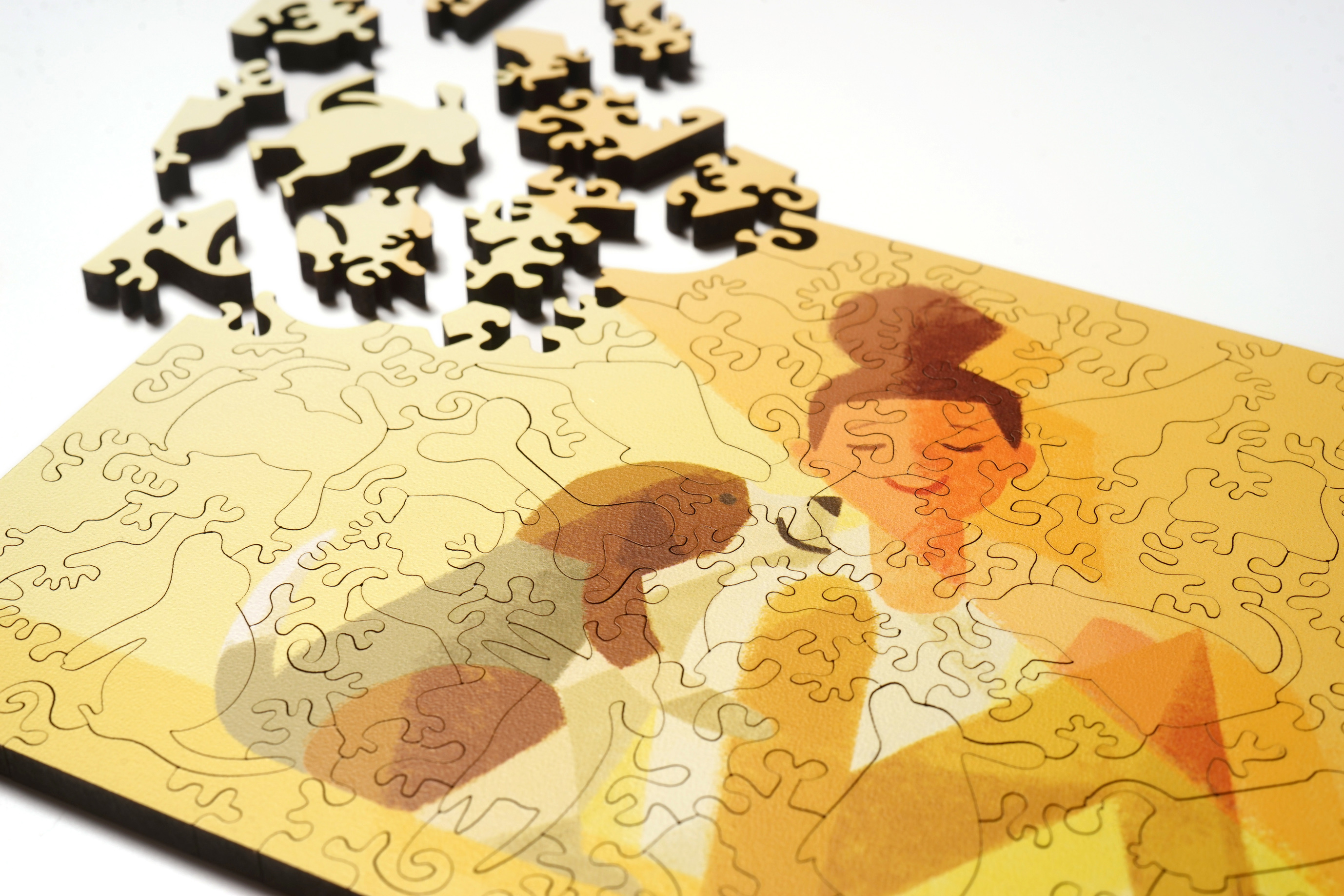 幸好在雷射切割技術的幫助下,來自台灣的海裡魚設計工作室與插畫家 JiaJiach 合作,推出了一系列木質拼圖。