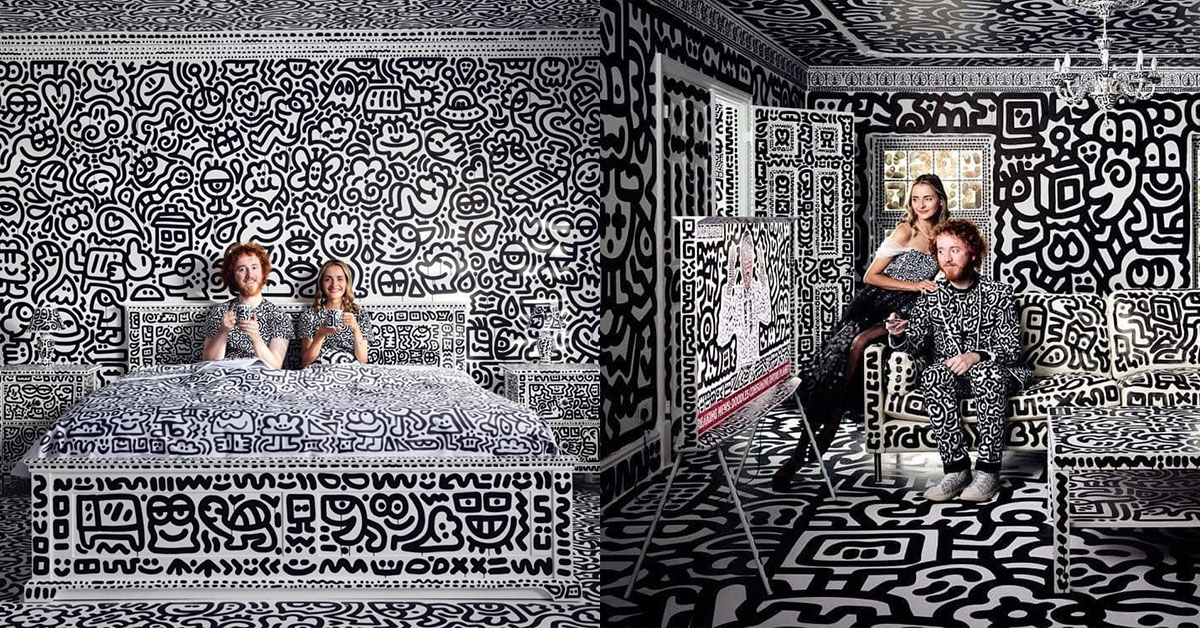 在他的生活中沒有一絲空白!就像是將小時後愛塗鴉的興趣放大,以「塗鴉先生Mr. Doodle」闖蕩江湖的英國藝術家Sam Cox,只要給他一整面白牆,他就能發揮無限創意靈感,用童趣筆觸繪滿整個空間,拼湊出自己的「DoodleLand」,而如今他的塗鴉版圖再上一層,甚至可說是圓了兒時夢想,因為他將位於肯特郡(Kent)的家,從裡到外無一放過,通通換上他招牌的黑色卡通風格塗鴉!