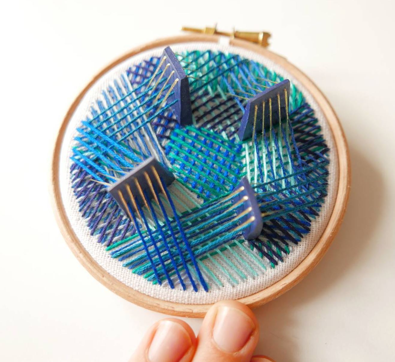 波蘭藝術家Justyna Wolodkiewicz將刺繡與軟陶相互結合,在圓形繡框中,創作出一幅幅有趣又鮮豔的3D刺繡。