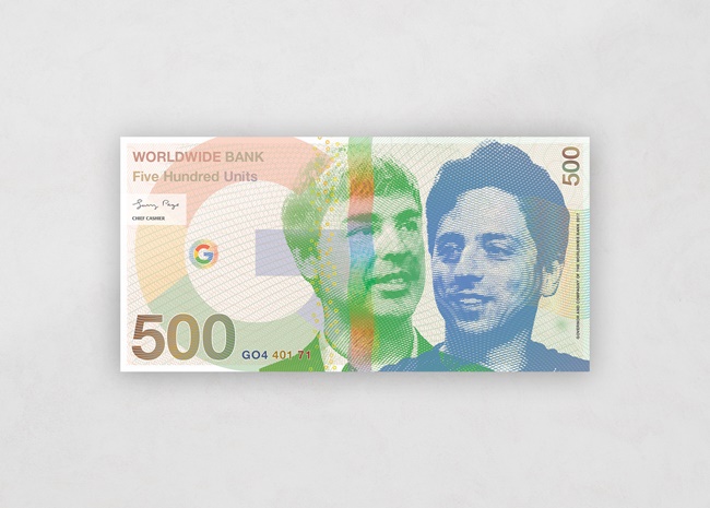 Dalloul 以歐元和英鎊為設計靈感,貨幣上有著各企業代表人物的肖像,有 Apple 代表:賈伯斯、微軟代表:比爾蓋茲和臉書代表:馬克祖克柏…鈔票上更印上企業 logo 和代表建築物,就像是蘋果要新落成的總部「Apple Park」就點綴在背景。