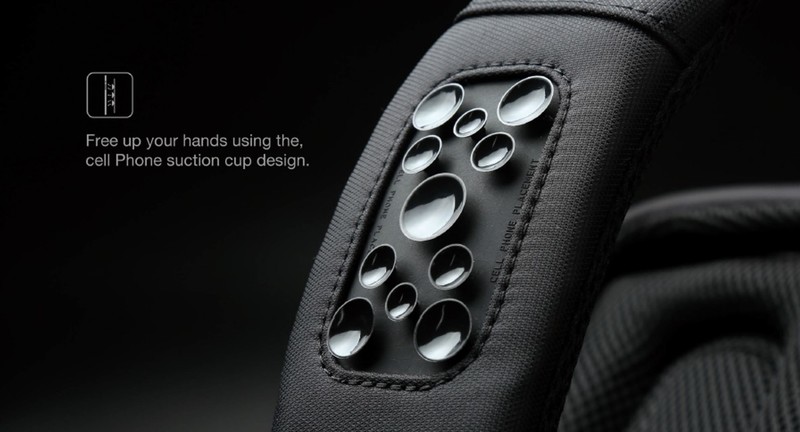 背帶上有方形吸盤,以吸盤+繃帶的結構來固定手機,適合一般上下班通勤時使用,臨時需要騰出雙手的時候,絕對會比塞入胸前口袋或緊繃的牛仔褲口袋來得快速又安全。