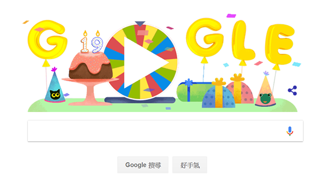 咦,這個詞是什麼意思?打開 Google 查查看吧!這個提供網路最大、影響最廣泛搜尋引擎的公司,在今天迎來了 19 歲生日,並於首頁以 Google Doodle 跟網友們分享這個喜悅,用生日幸運轉盤的方式,重溫這些年來首頁曾出現的 19 款互動小遊戲,不知道大家玩過幾個呢?等等,Google 不是創立於 1998 年 9 月 4 號嗎?其實,9 月 4 號是他們遞交成立公司申請書的日子,9 月 7 號才正式成立,但早在 1997 年 9 月 15 號他們就註冊了域名,最終 Google 選擇 9 月 27 號當作「正式」的生日,而第一個 Google Doodle 則是 1998 年的火人節(Burning Man Festival)Doodle。