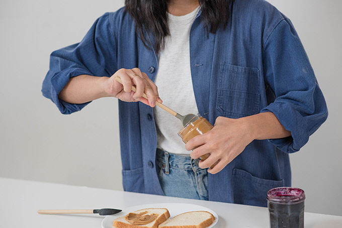 PBspoon以食物等級、耐熱矽膠作為材質,從外觀來看,其實有點像抹刀也有點像湯匙,有弧形的那面看起來就像傳統湯匙,只是平邊可以在罐子的每個角落,如秋風掃落葉般的挖出剩下的花生醬,而背面則是平坦的抹刀,能將挖出來的花生醬塗抹在麵包之上,用完後,直接丟到洗碗機洗就行,使用上非常方便。