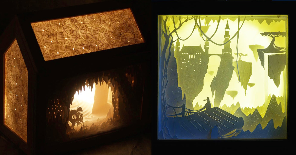 除了繪畫以外,紙張也是許多藝術創作者用來創作的素材,來自法國的藝術家 Aline Maire 就受到紙藝千變萬化的可能性而啟發,將神話、動畫裡的世界變成精緻又柔美的紙雕燈箱,也就是她所稱的 Abracadaboxes(一個具有魔法的箱子?)