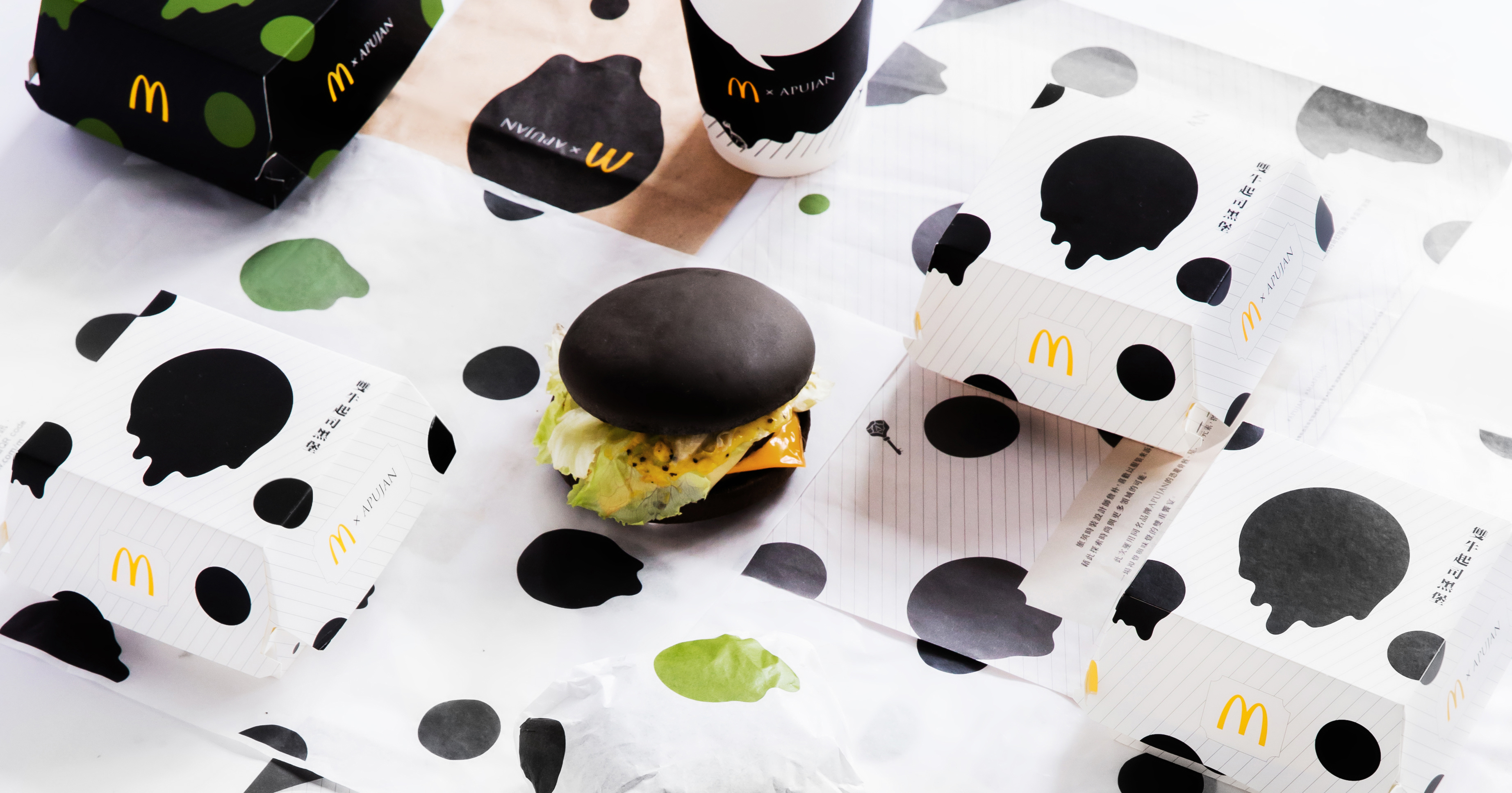 時尚設計概念也跨足速食包裝設計!繼台灣花布文創品牌印花樂與麥當勞帆布包的合作案例之後,這個跨國飲食產業的創意之門持續大開,跳脫品牌形象玩跨界,這次的大型聯名則與台灣新銳時尚設計師詹朴合作,從品牌 APUJAN 的貫用元素之一「墨流」作為發想,替麥當勞量身創造童趣版的圓潤墨流新包裝,打造出色彩滴落在麥當勞世界的奇幻想像。