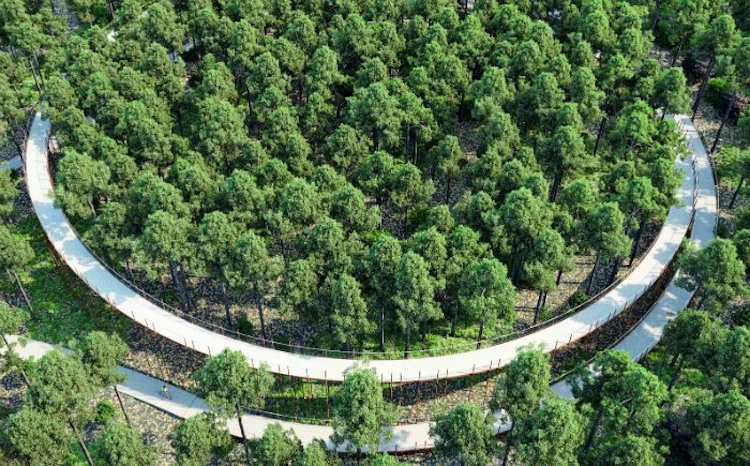 如果水岸邊的自行車道不能吸引你,來看看林堡省提供的另一個選擇:「穿越樹林而騎」(Cycling Through The Trees) 。這條特別的自行車道位於一片低度開發的森林區,結構上由兩個圓所組成,全長將近700公尺,騎乘時會緩緩爬升,不過十公尺的高度讓老幼都適宜。