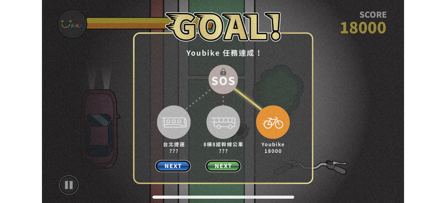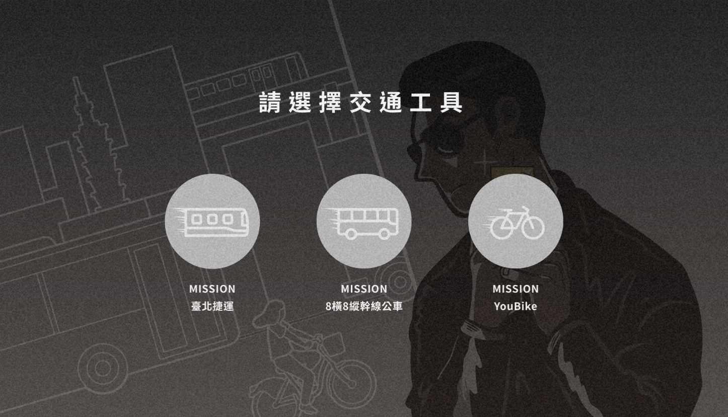 接著系統會出現三種關卡選項,分別是「捷運」、「公車」和「YouBike」,看來應該就是針對這三種交通工具來設計。