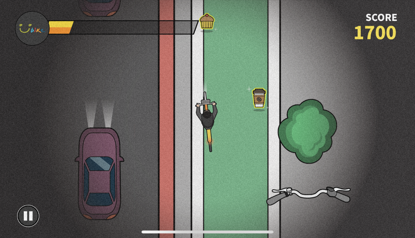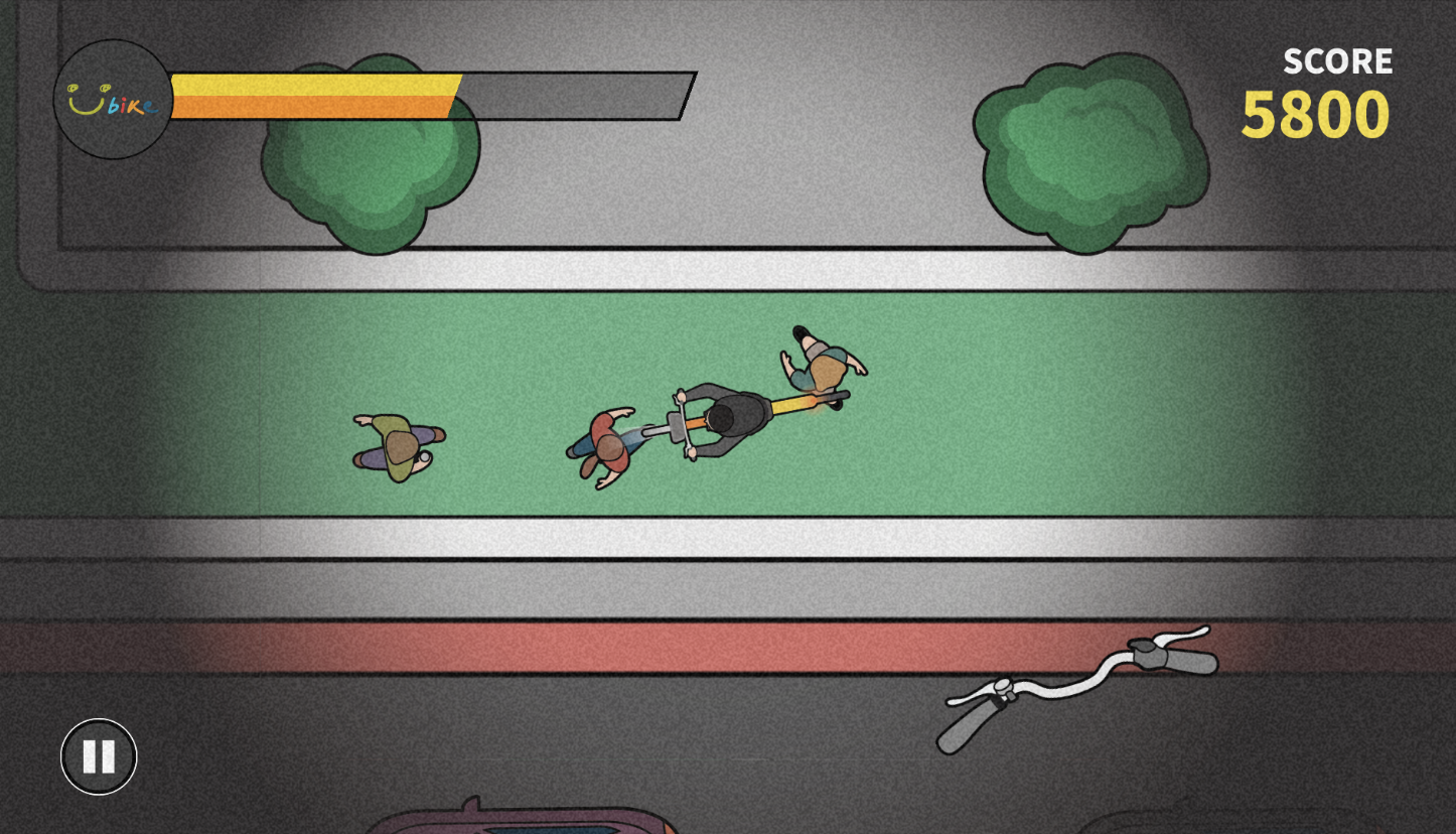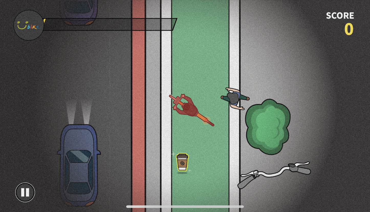 YouBike 在橫向移動時、視角畫面並不會跟著轉,連帶讓編輯腦子也跟著打結,實在很困擾(腦子不好怪別人),不過只要謹記「不管直向或橫向、腳踏車龍頭的移動邏輯都不變」,其實剩下的就是 誰撞到的人比較少 的差別了XD