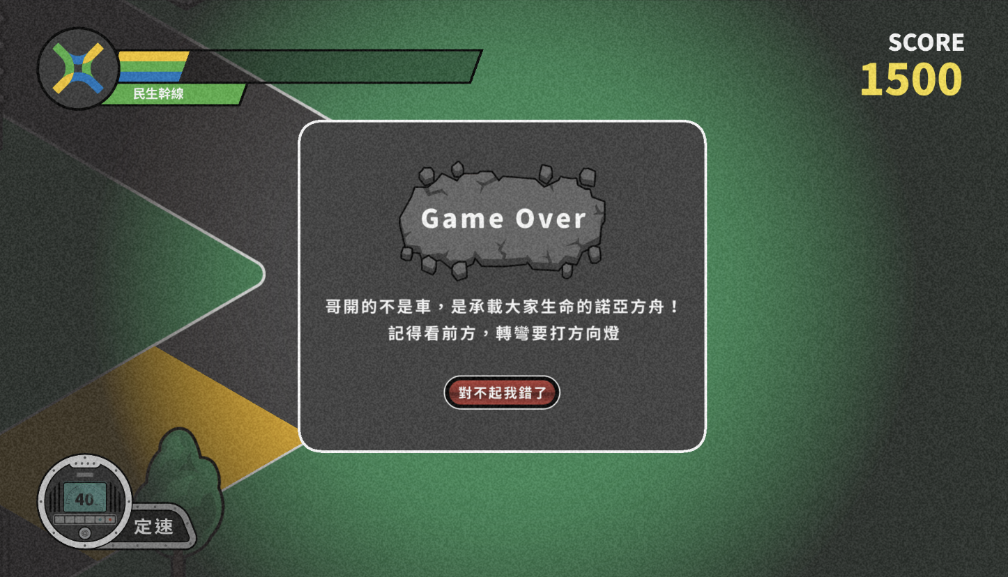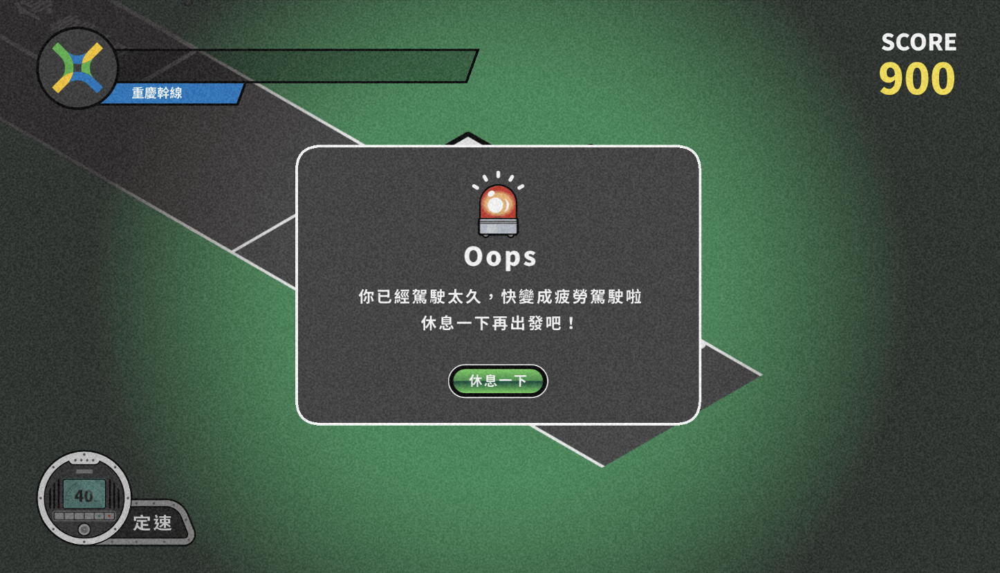 死超過三次之後,遊戲會跳出這個對話框,溫柔提醒你避免疲勞駕駛,但其實是想強制編輯暫時先不要再上路了吧啊哈哈哈哈