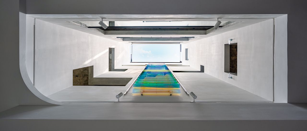 走進 LIGHTWELL,不難發現這是棟狹長型建築,而裡頭的光線卻十分柔和明亮,這是因為有貫穿整座建築的「天井」。自然光由挑高的天井上方落下,替屋體斟滿日照與氣流,天井四周的壁面構築著不規則的幾何框景,錯落的光影營造出豐富的視覺效果,新媒體藝術家高德亮的裝置藝術《Light Zone 光區》更替天井點綴出戲劇性的層次感。框景之間不僅是新舊時代的對話,也模糊了室內與戶外的界線、打破建築的既定疆界,讓空間有更多元的想像可能,「天井的 24 個框景」不僅獲得 2020 金點設計獎空間設計類的標章,更入圍角逐年度最佳設計獎呢!
