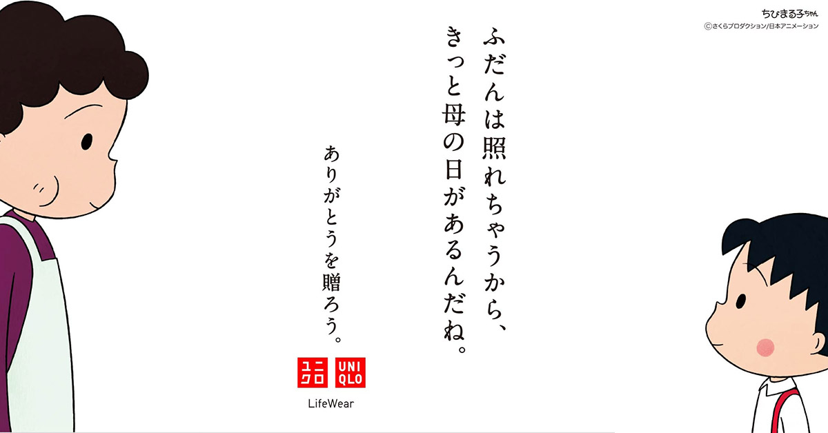 隨著母親節即將到來,不知道你的禮物與欲表達感謝的心意是否已經準備好了呢?若還沒有,不妨學學小丸子吧!日本UNIQLO繼去年請來《我們這一家》花媽擔任母親節廣告代言人後,今年則以《櫻桃小丸子》小丸子與媽媽這對經典漫畫母女檔為主角,躍上日本紙本新聞報紙版面!