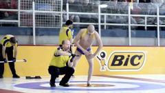 這個比賽項目也結合太多種運動了吧中間那個把胸毛刮成內衣的粉絲很逗 哈哈...