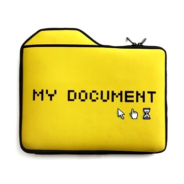 「My Document」電腦防護包用醒目的亮黃色配上熟悉的檔案圖示讓人從遠處就可以看到使用者獨特的品味