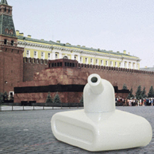 戲謔地玩弄著坦克這個帶有強壯、戰爭、力量的象徵,