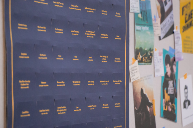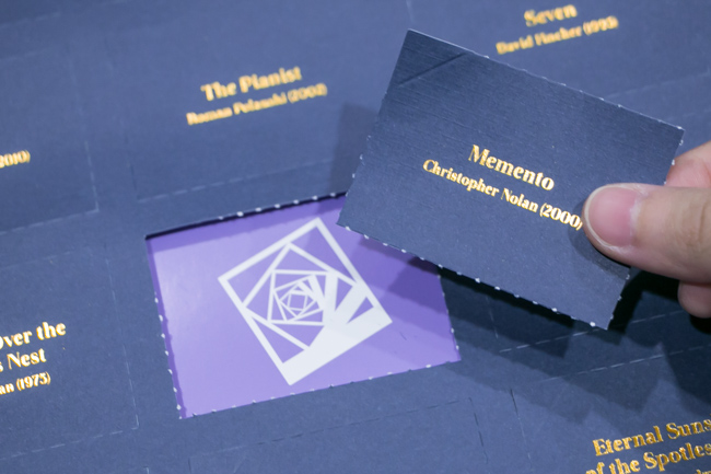 海報的設計有點像小時候柑仔店的戳戳樂,或是刮刮樂,100 部電影如同一張張小郵票,你必須看完一部、再輕輕一撕,才會看到後面隱藏的圖像,而那些簡潔的小插圖都是電影中的經典物品或場景,讓你一撕開就能馬上會心一笑、與剛看完的電影產生共鳴!當然,這百部清單是哪幾部,就像驚喜包一樣要等到你親自收到海報才會揭曉,也許會有你不認同的項目,但也能幫助你建立自己選片的基準。