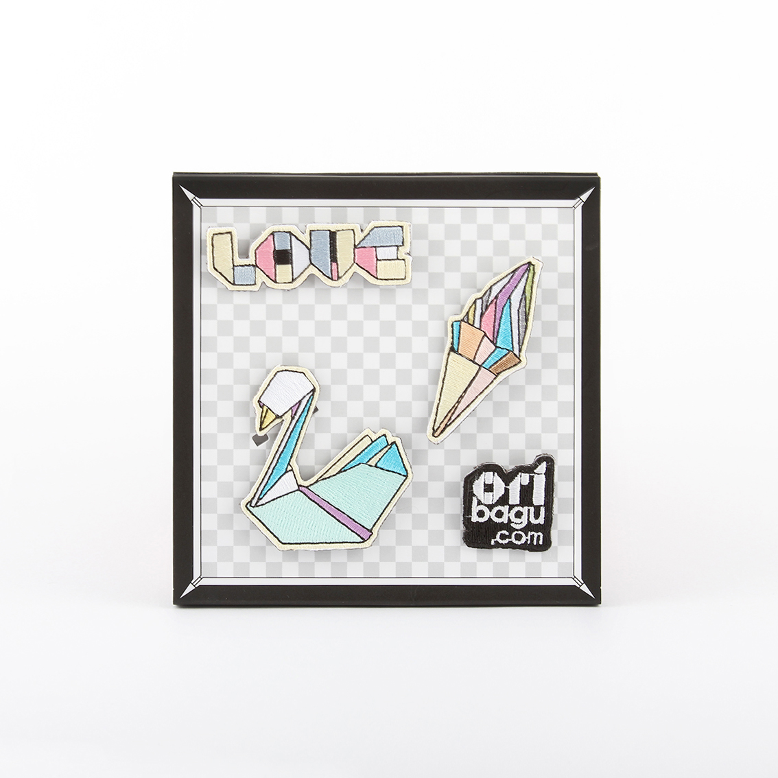 “Ori”是日文origami (折り紙) 的縮寫,直譯便是”摺紙”;”Bagu”是日文發音的”bag”。傳統origami的素材是紙,創造ORIBAGU的設計師採用棉、尼龍、鐵等材質,發展成一系列ORIBAGU摺紙別針組;傳統的摺紙藝術在設計師的巧思轉化下,俐落變身為現代簡約的時尚單品。