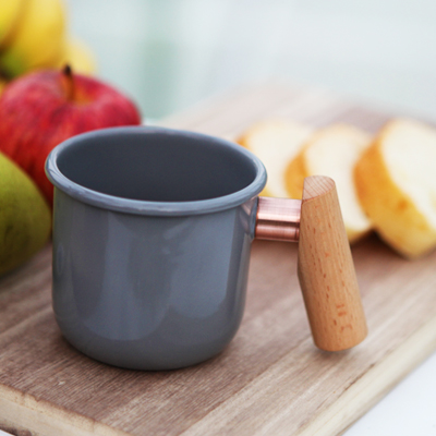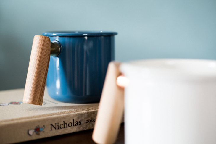 琺瑯杯身與木柄之間是由紅銅作為連接的橋樑,銅材低調不搶眼、神來一筆的設計,巧妙的連結了兩個不同的元素,也讓整體保有一致的格調。