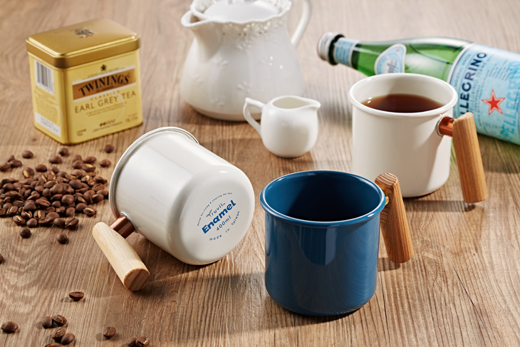 琺瑯表面平滑、容易清理,本身的材質屬性也不易與盛裝物產生化學變化,在使用時更能保持飲品本身的風味,跟食物接觸時比較無虞,杯子看起來美之外,用的安心也很重要呢~(琺瑯杯:人家可不是花瓶)
