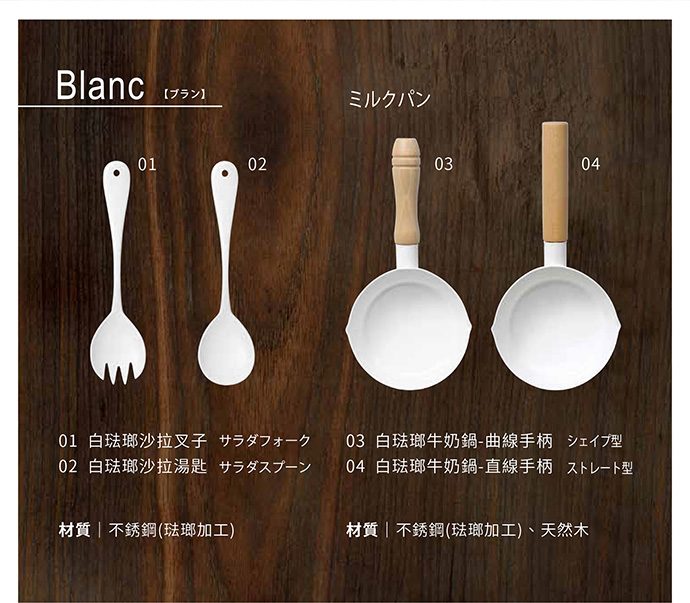 日本高桑金屬_BLANC 琺瑯沙拉叉匙組(白)