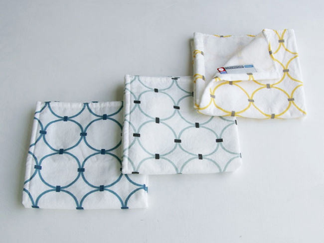 丸榮與日本服裝設計師兼插畫家ひびのこづえ合作,H+M 系列採用設計師跟丸榮首位字母的縮寫,以美國 Supima 頂級超長棉製作,吊起來散發的光澤相當自然,並運用蜂巢式織法讓它不易脫毛,連邊角的縫紉都可見其用心,拿來擦拭家中小寶貝的嘴嘴,也不用怕會引發過敏或傷身。