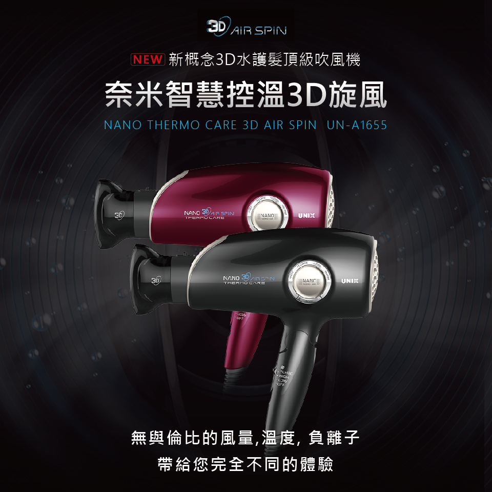 奈米智慧溫控3D旋風吹風機(時尚黑 / 名媛紅)