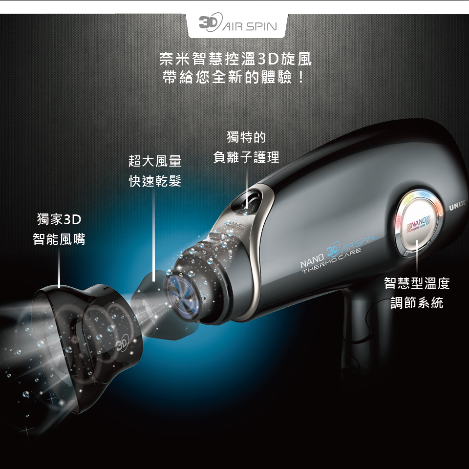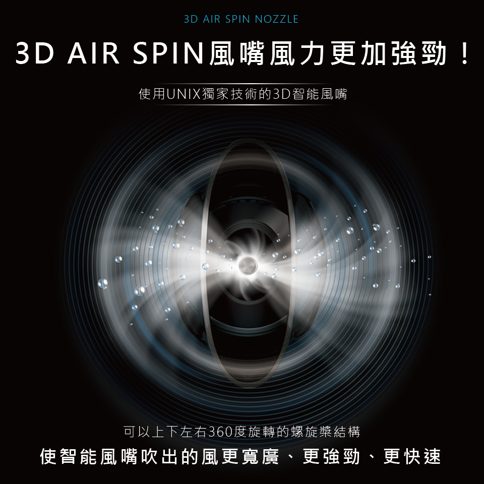 - 3D Air Spin 智能吹嘴,立體風量快速強勁,加速頭髮快乾蓬鬆