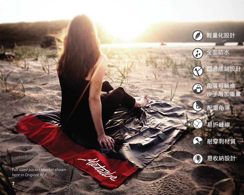 來自美國最多陽光的加州,Matador口袋毯配件品牌的設計團隊熱愛戶外活動,希望帶給大家的就是隨地就坐的方便與樂趣,而第一款經典口袋毯,一發行就熱賣!此一產品在登山客去爬山時、粉絲去戶外演唱會時、周末爸媽帶孩子去公園時等,都可派上用場,方便你我更能享受每一次的美好時光。