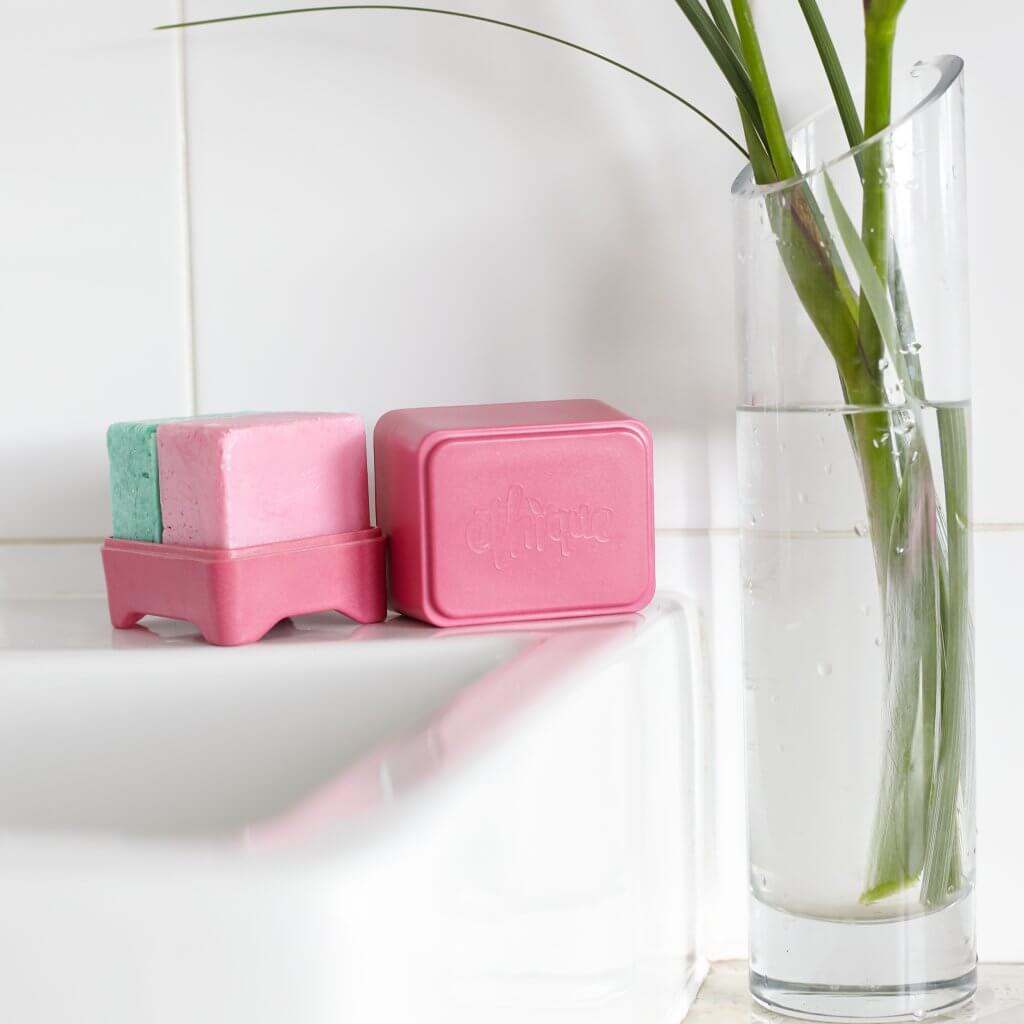 在愛護環境的心意之下,也不能忽略實際使用需求,Ethique 推出的專用收納盒,空間剛好容納兩塊髮餅(或者一塊洗髮、一塊潤髮),用來放置洗髮與潤髮餅,上蓋可避免淋浴的水潑溼、半挖空的底層用來透氣,讓產品的使用體驗可以更加完整。