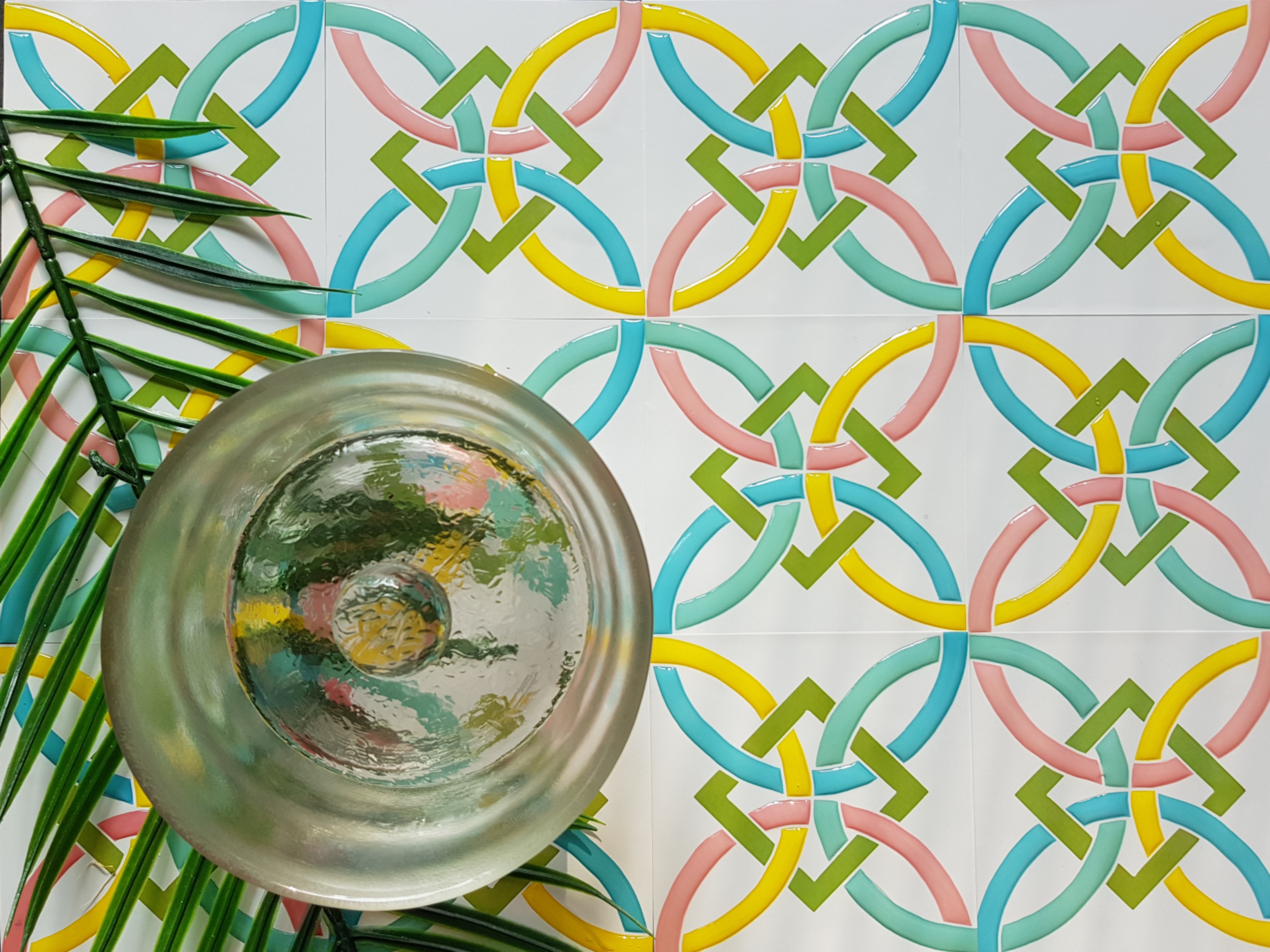 這次特地邀請一直致力採集台灣古花磚的文創品牌—【QUEMOLICA捲毛力卡】合作,透過手繪與重新配色,保留老花磚原來的美感與四方連續特性。