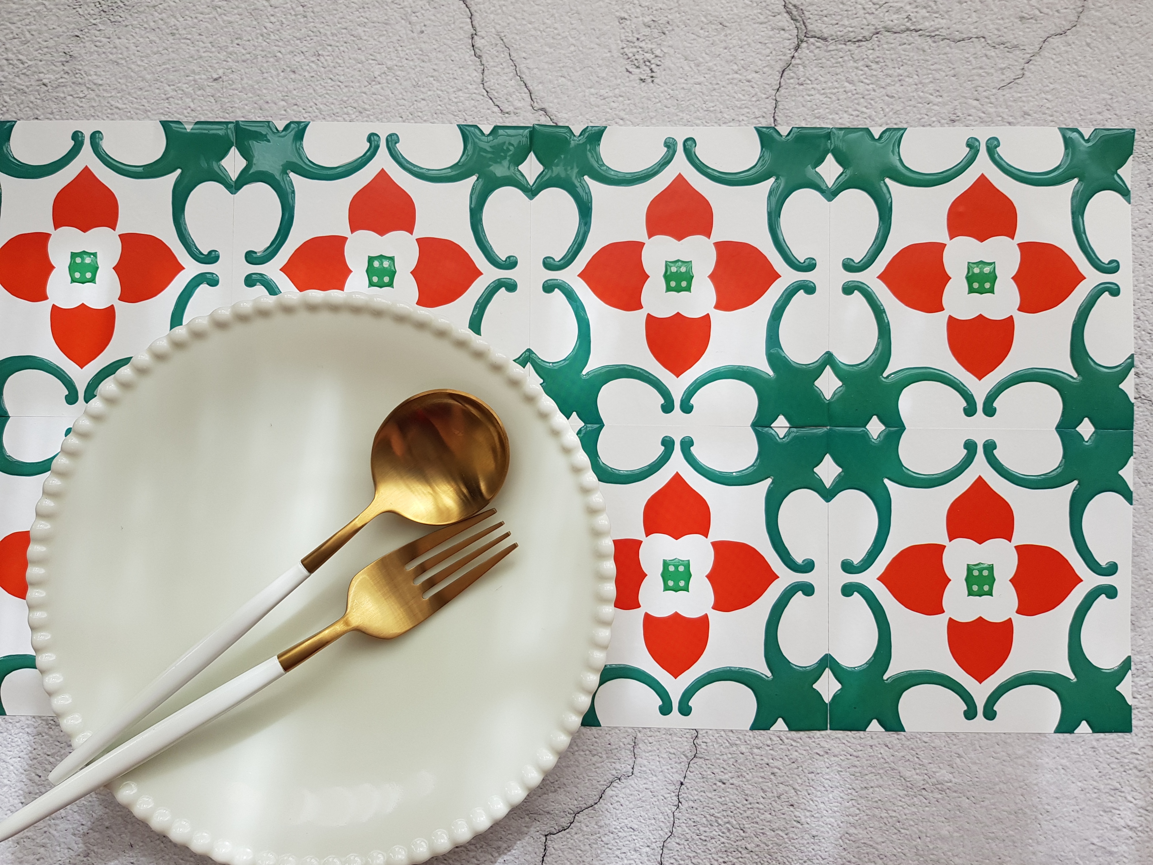 這系列的花磚貼紙皆是選用通過 SGS 安全認證的 PVC 材質,而且還兼具防水、防油、耐熱的特性,表面易清潔,沾到汙漬的話,用中性清潔劑擦拭乾淨即可。