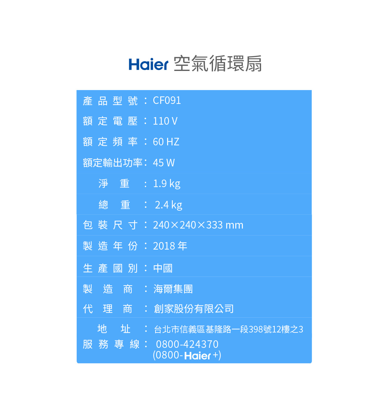 海爾 Haier_真 360° 空氣循環扇 CF091 (9吋)