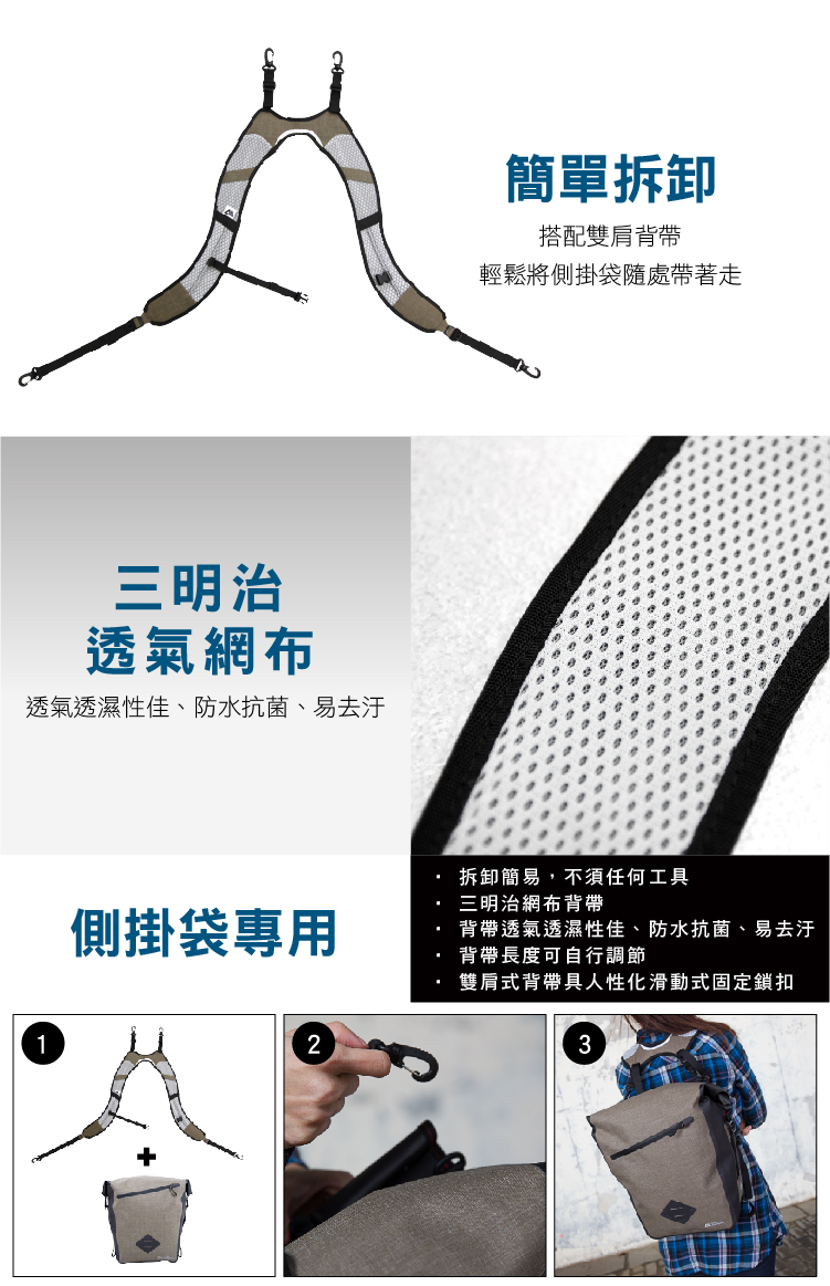 ‧ 三明治網布背帶,透氣透濕性佳、防水抗菌、易去汙