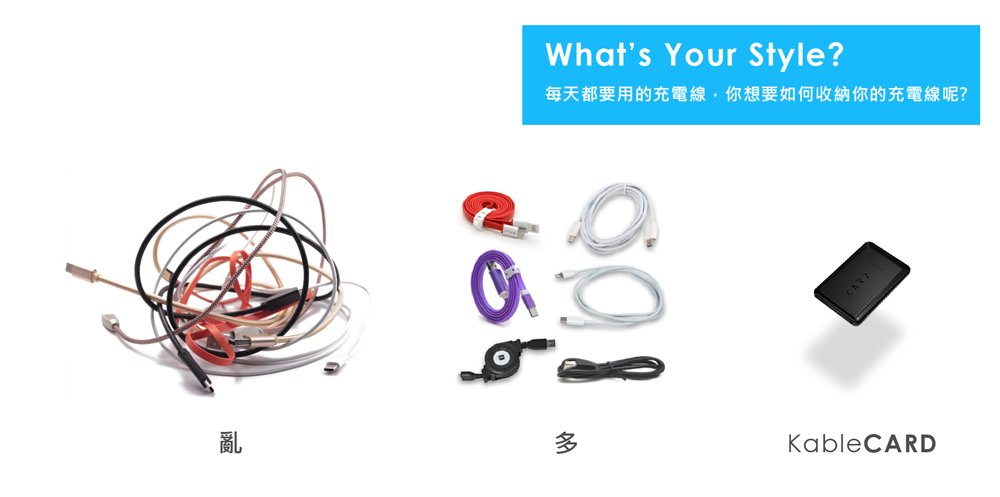 答案是6種,我們最多將會需要6種的充電線。你是否也遇過這種狀況,需要時總是找不到合適的充電線。根據墨菲定律,當你最緊急需要充電的時刻,就是可能無法找到對的充電線。然而如何在任何時刻都攜帶六種不同的充電線? 看KableCARD用設計來解決這問題。