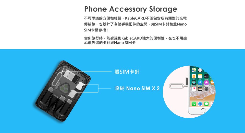KableCARD 內建 SIM卡針&2個 Nano SIM 卡儲存空間。雖然看起來簡單,但在重要時刻可是能發揮最大的作用。