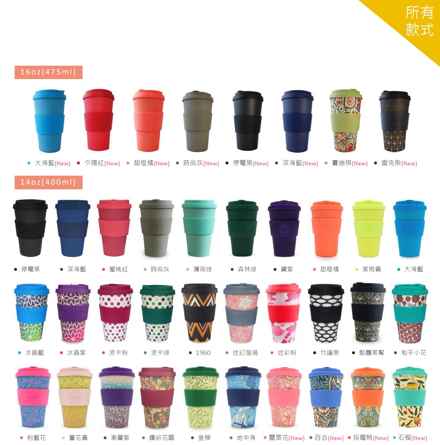 英國 Ecoffee Cup 環保隨行杯 花樣款 16oz/475ml (三色選)