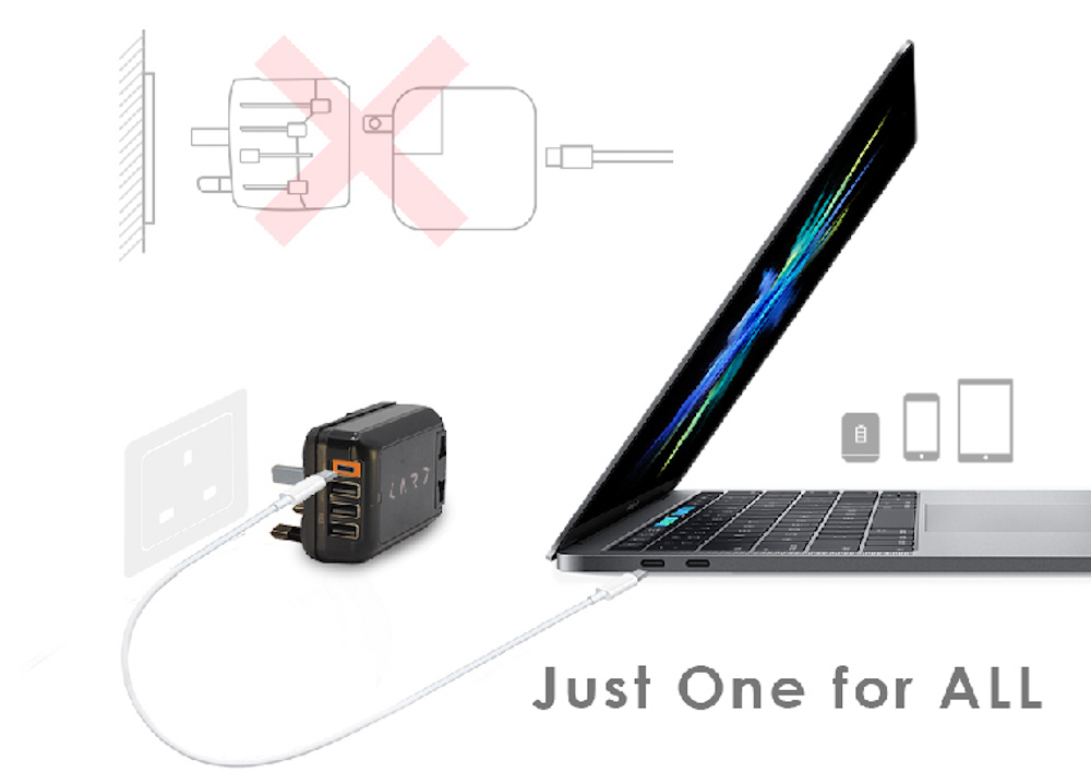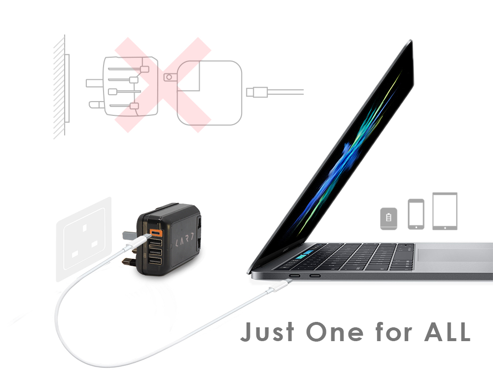 有1port TypeC可供筆電充電外,還有3port USB供手機、行動電源、平板充電, 還有一個AC插座供數位相機電池充電,旅行必帶的裝備,一顆CA4 Pro搞定所有充電問題