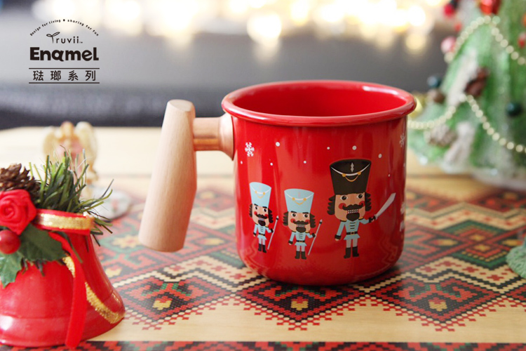 Truvii_聖誕胡桃鉗 木柄琺瑯杯 400ml(山毛櫸)