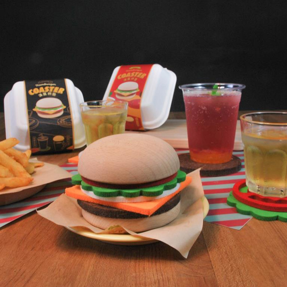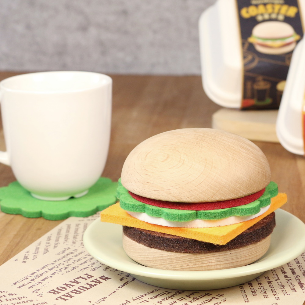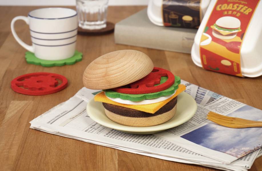 CP 值滿分的木匠漢堡杯墊組,層層美味,有富含營養的紅色番茄、綠色蔬菜、洋蔥跟濃郁的黃色起司,搭配多汁的肉片,杯墊總共五款,選用毛氈材質,吸水迅速!不同造型可根據個人喜好使用。而且,漢堡麵包還可以當作杯蓋使用,貼心幫您阻隔異物掉入飲品。快來嘗鮮吧!
