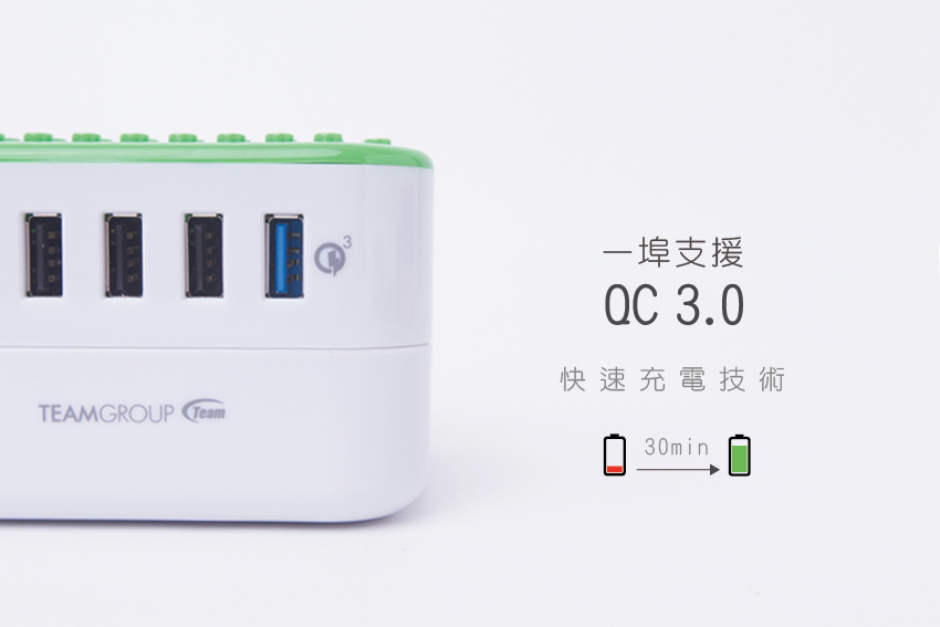 『方塊充』WD02 支援高通 Qualcomm QC 3.0快速充電技術。