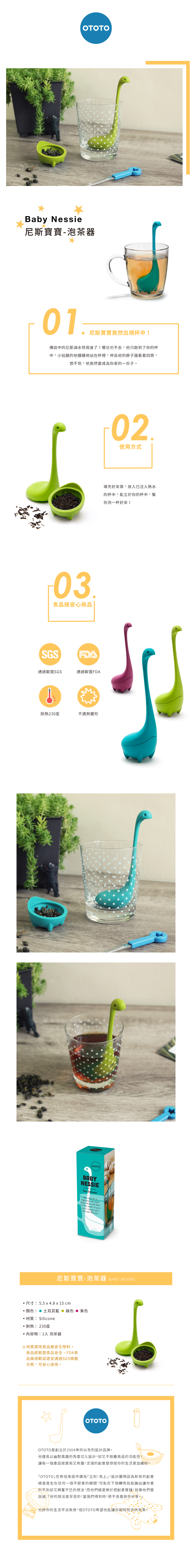 產品是由以色列品牌 Ototo 所設計,將尼斯湖水怪的浪漫傳奇轉化為生活設計品,之前有廚房中的瀝水勺和大湯勺,今年則進一步縮小尺寸變成泡茶器,同樣的水怪形體,帶來不同的用處與樂趣!![]()