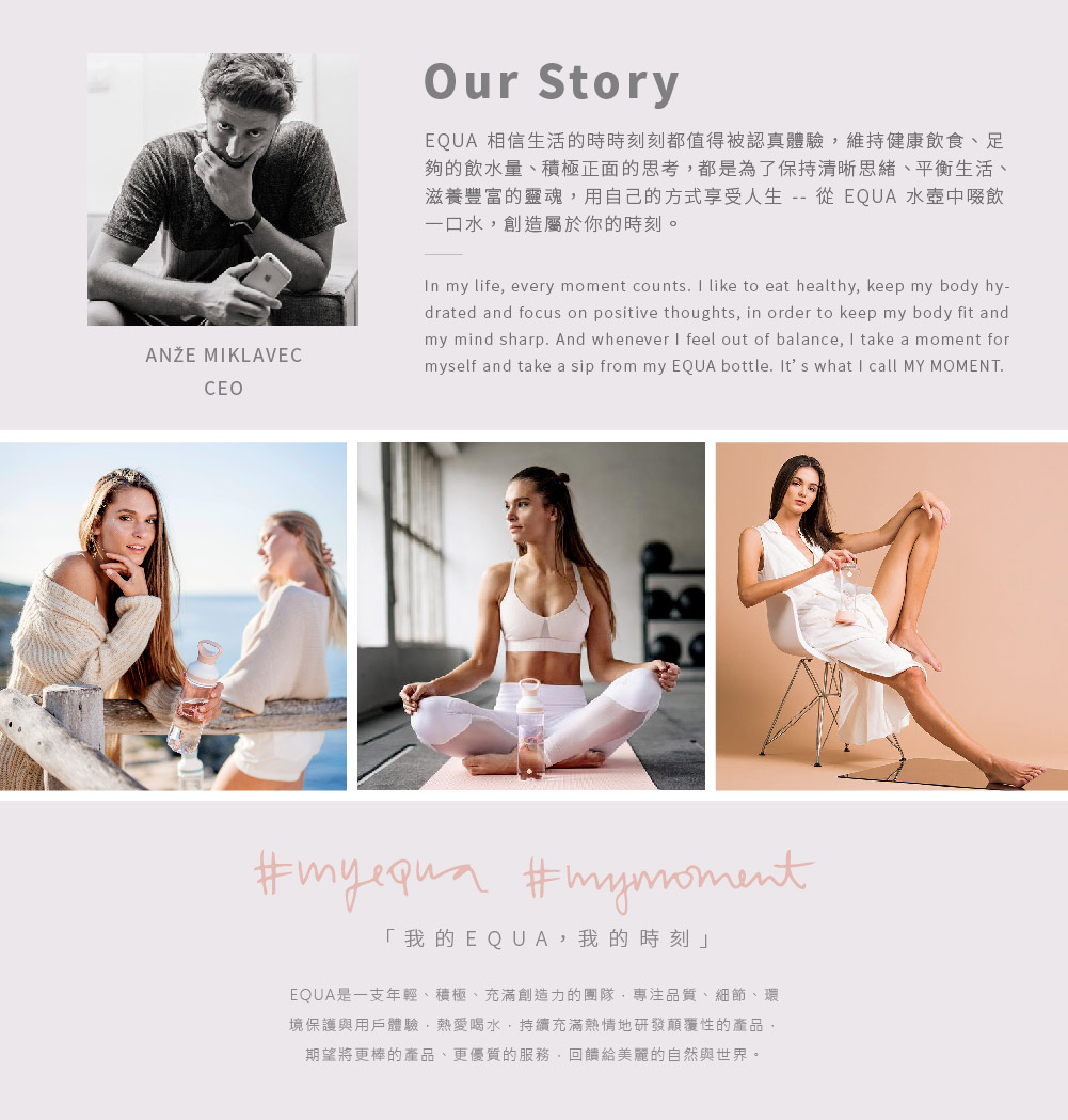 咦......不是在介紹保溫瓶, 怎麼突然出現宛若偶像歌手、戲劇明星一般的小鮮肉帥哥呢?原來啊原來~這是 EQUA 團隊的 CEO-Anze Miklavec ,而他吸引人注意的地方不只是他的外表,因為他更是之前紅遍世界的「山羊角咖啡杯 Goat Mug」,獲得紅點設計獎肯定、2018 世界咖啡大賽指定的「智慧咖啡壺 Gina」的設計團隊成員! EQUA 與 Goat Story 擁有同一群專業設計團隊,這或許從他們同樣希望能夠顛覆人飲用體驗的設計精神也能窺知一二。