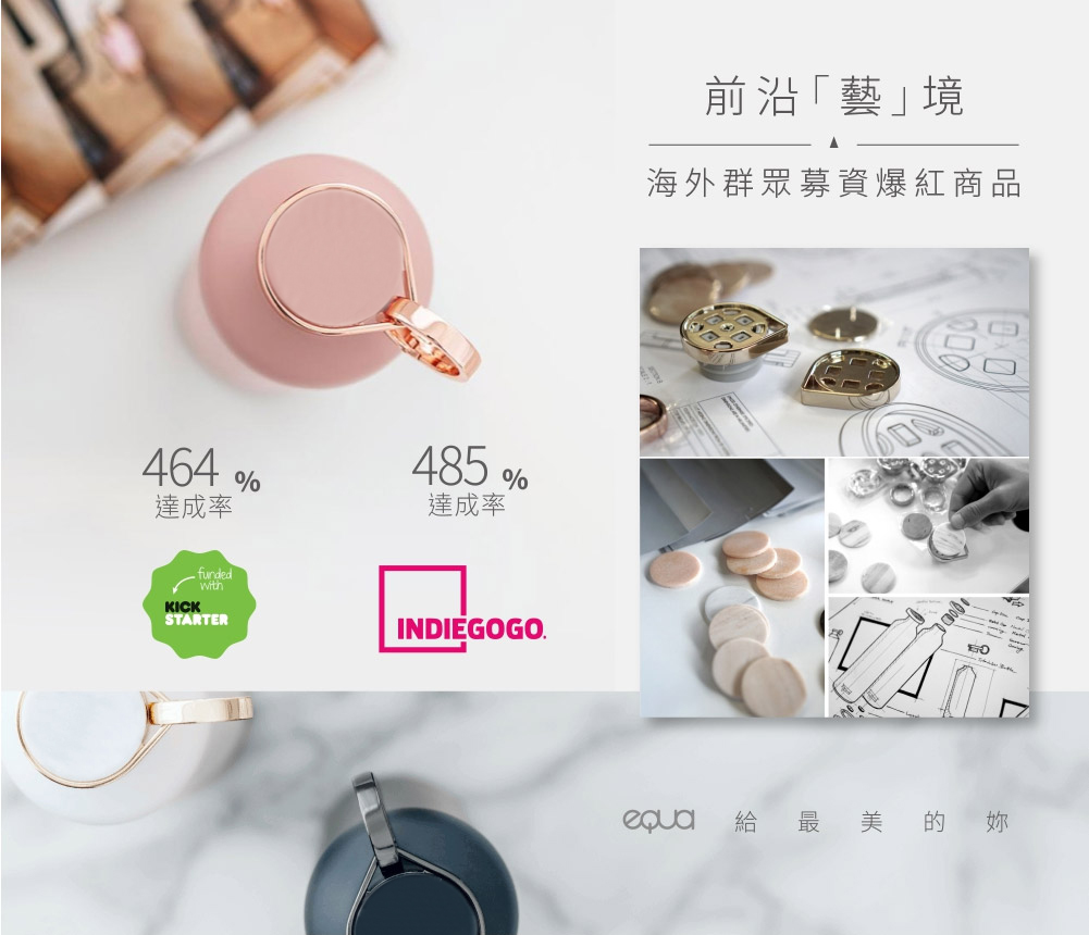 來自斯落維尼亞的 EQUA 過去就以創造美型水壺、注重環保出名,今年團隊推出了一款「EQUA 極簡奢華保溫瓶」,在兩大國際群眾集資平台 Kickstartet 與 Indiegogo 分別成功募集到 464%、485% 達成率!
