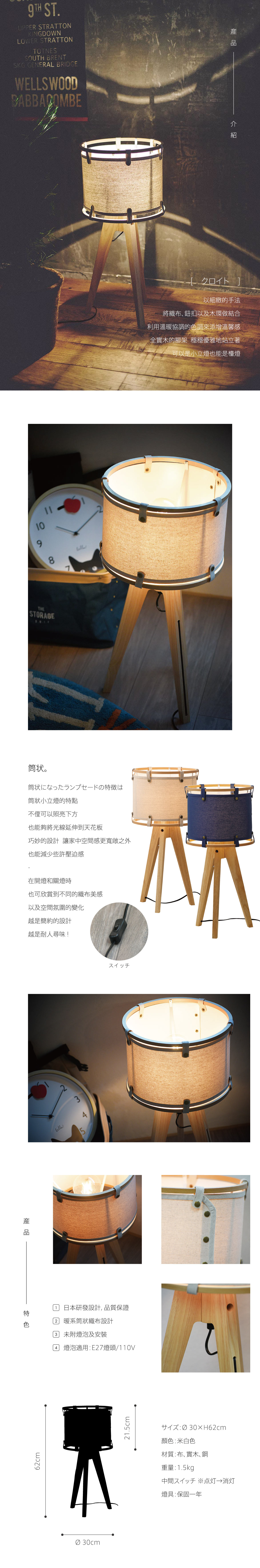 尺寸:直徑 30 x 62 cm材質:布、實木、鋼規格:重量:1.5kg