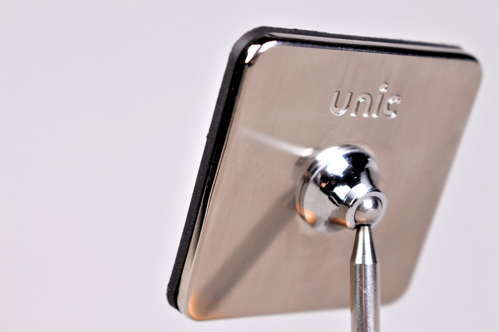 設計理念:這次我們採用了來自北美的胡桃木及歐洲的山毛櫸,打造出完美的原木半球體結合高質感的合金底座,除了增加配重更勾勒出極簡俐落的冷冽線條,讓使用者在操作手機時擁有最舒適的安心感,堅持一體成形的金屬連桿與球關節結構無縫接軌,巧妙的隱藏了螺絲、完美地連結了金屬髮絲紋背蓋,並烙印上unic的logo驗明正身,代表我們在工藝上追求完美的堅持。