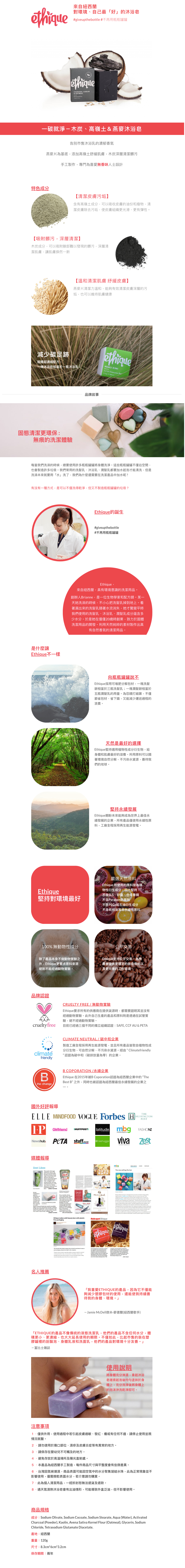 k紐西蘭 Ethique_沐浴系列 一碳就淨/木炭、高嶺土&燕麥沐浴皂 120g・全新配方,研磨更加密實,一樣容易起泡・紐西蘭原裝進口・天然植物性原料・採用可分解包材,向瓶瓶罐罐說不・不含SLS、矽靈、 合成香精、paraben防腐劑・全素成分、不進行動物實驗![]()