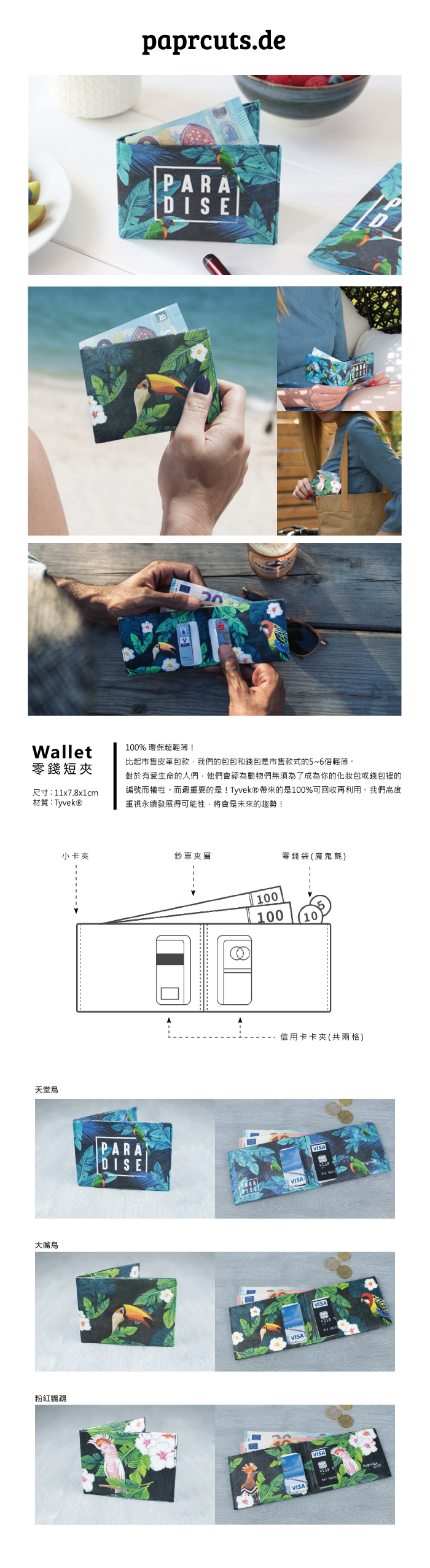 德國paprcuts.de 零錢短夾 粉紅鸚鵡 Wallet Kakadu