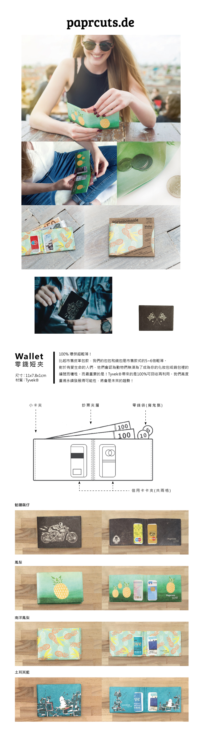 Paprcuts.de零錢短夾,別於以往的設計,最方便的是除了紙鈔夾層,還有專屬零錢收納隔間以及可放置各種尺寸收據的隔間,讓您攜帶短夾時也可以輕鬆的隨手裝載零錢喔 !