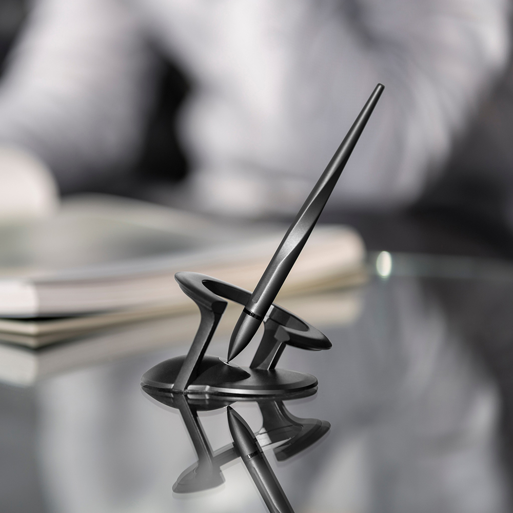 創造無重力氛圍,讓桌面彷彿漂浮在外太空的HOVERPEN 自立筆, 則是一支挑戰地心引力的筆。乍看彷彿無重力般、違反直覺地漂浮旋轉,讓明明坐在桌前的你,好像身處太空操控著星艦,帶給你猶如仰望繁星的感受。書寫時拿起它、思考時凝望它,無論在辦公桌面、生活桌面、玄關或櫃檯,都能成為目光焦點,平凡的桌面一秒變得不平凡。