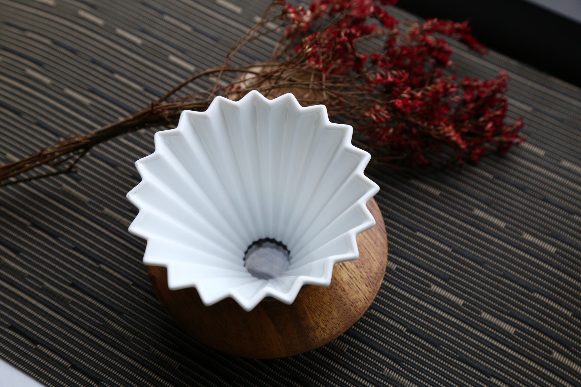 最後的最後要介紹大家認識的,正是在如此合拍的單人咖啡組合中,扮演畫龍點睛效果的 ORIGAMI 摺紙濾杯。這款濾杯是由 Simple Real 團隊與日本 ORIGAMI 摺紙濾杯團隊聯名合作,在色彩上完美契合粉白色的手沖壺,在功能上獨創摺紙般的大間距,被許多專業咖啡玩家評價流速超穩定,又能簡單上手,一樣都是咖啡新手和資深玩家都會滿意的理想濾杯。